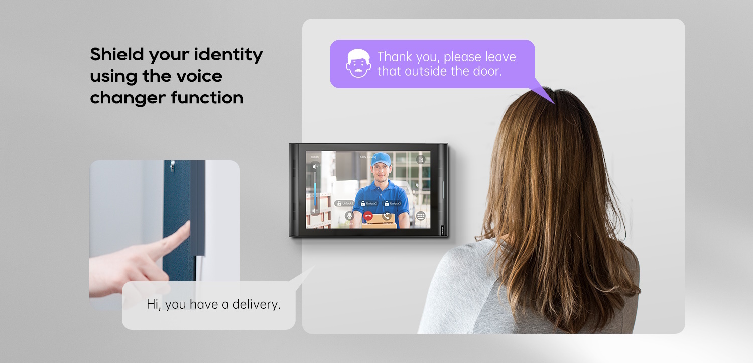 - Ingebouwde stemvervormer voor extra privacy richting onbekende bezoekers.