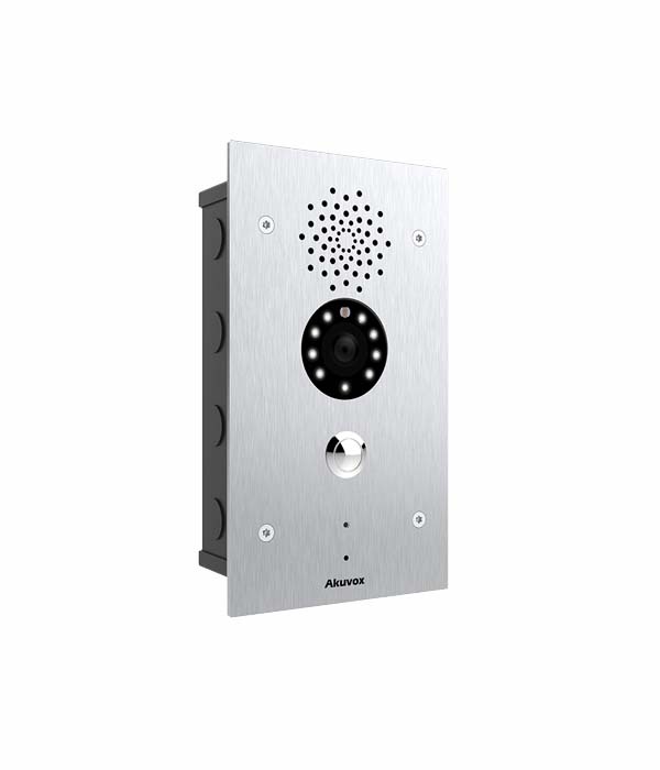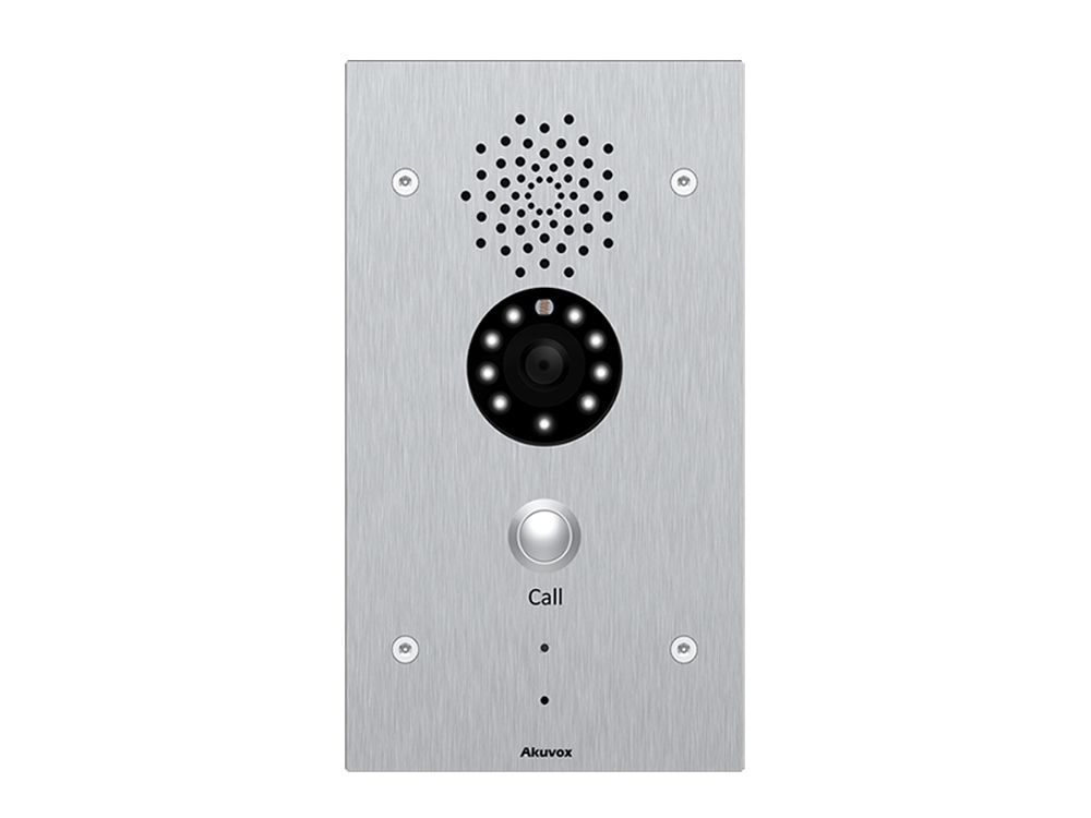 De Akuvox E21V is een uiterst robuuste, vandaalbestendige SIP-intercom voorzien van een 3-megapixel camera en één drukknop. Dankzij de roestvrijstalen behuizing en IP65/IK10-certificering is dit toestel uitstekend bestand tegen zware weersomstandigheden en vandalisme. Het systeem werkt via de SIP-standaard, waardoor het naadloos integreert met vrijwel elke VoIP-telefooncentrale.