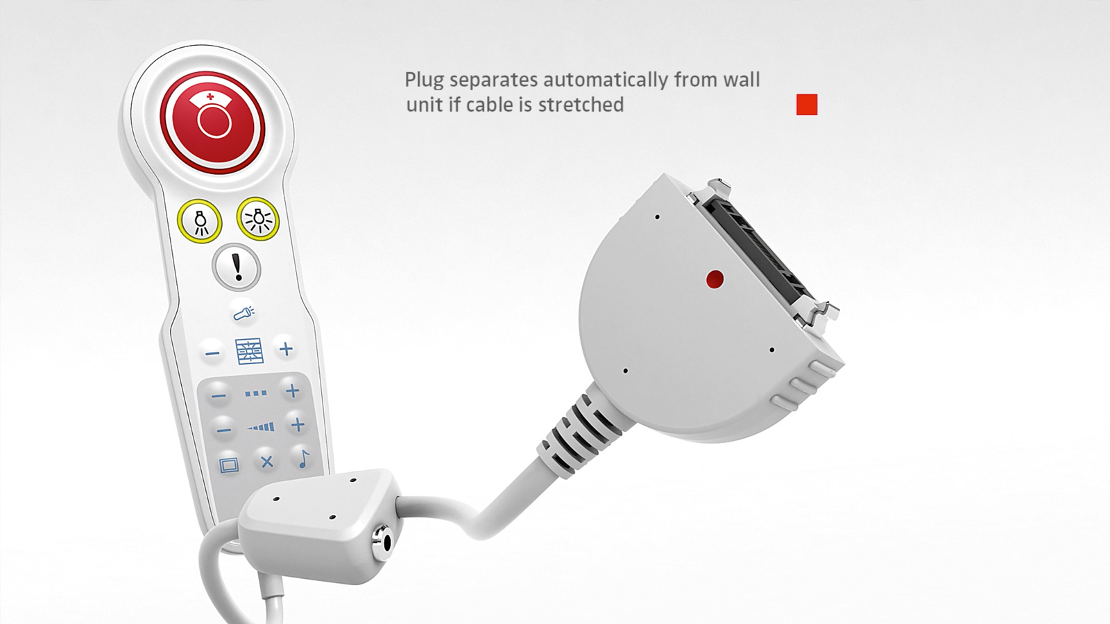 - Directe alarmering: De opvallende rode knop zorgt ervoor dat patiënten in noodsituaties direct en intuïtief een verpleegoproep kunnen maken.