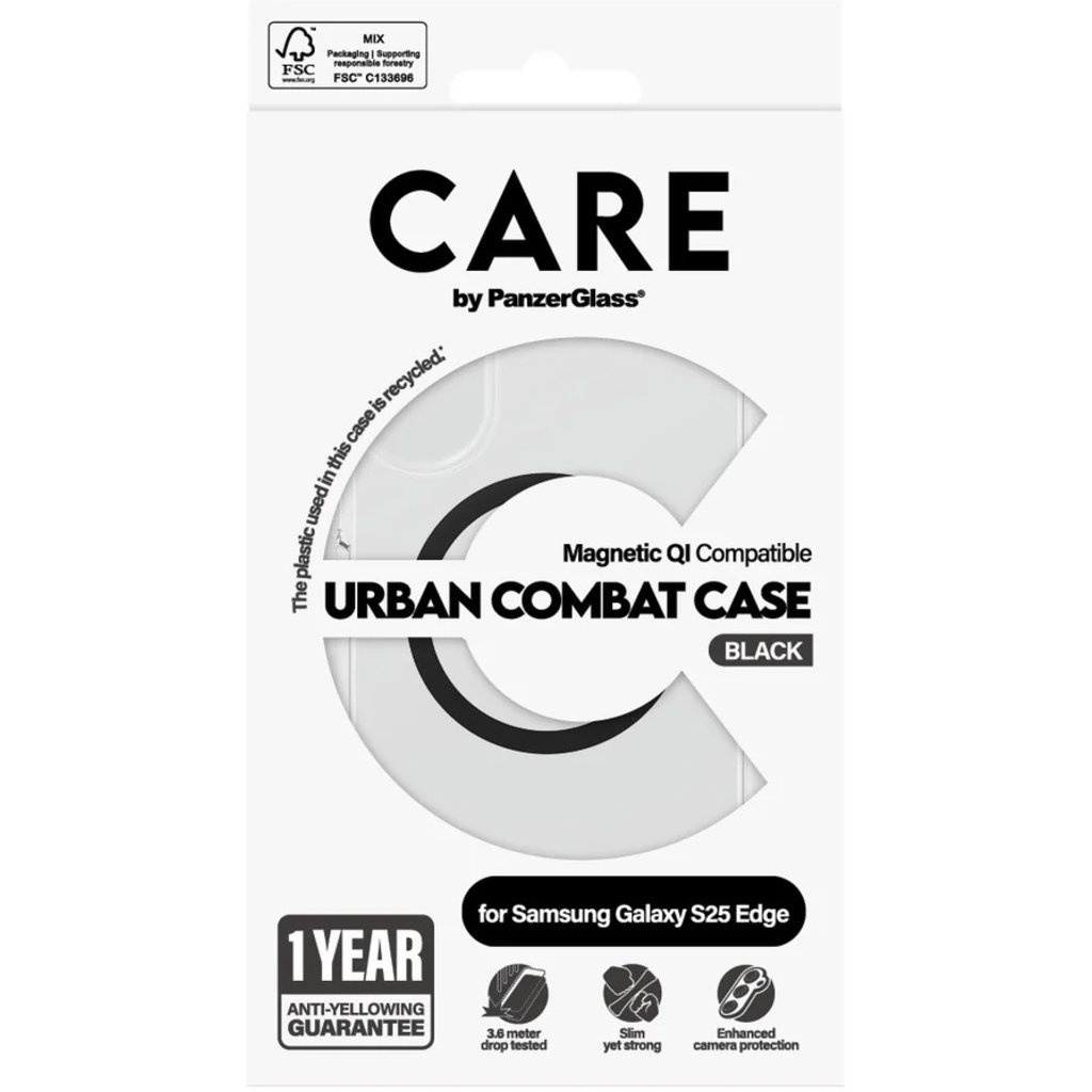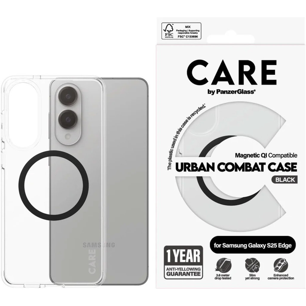 CARE by PanzerGlass Flagship Case Transparent Urban Combat w. Black QI Module Samsung S25 Edge
