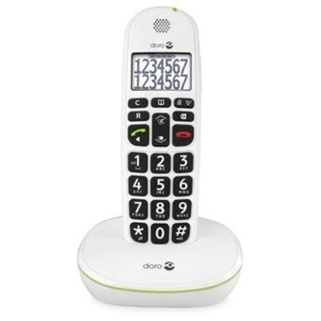 De Doro PhoneEasy 110 is een zeer eenvoudig te bedienen draadloze DECT telefoon. De telefoon heeft een groot overzichtelijk display en extra grote cijfertoetsen. De achtergrond verlichting zorgt ervoor dat het display en de toetsen ook in minder verlichte ruimten goed zichtbaar zijn. De PhoneEasy 110 beschikt over TrueSound wat voor een duidelijke en heldere geluidsweergave zorgt. De PhoneEasy 110 heeft een extra luid in te stellen volume (tot maximaal +30dB). De laatste tien gekozen telefoonnummers kunnen worden herhaald en het telefoonboek biedt plaats aan maximaal 100 namen en nummers.