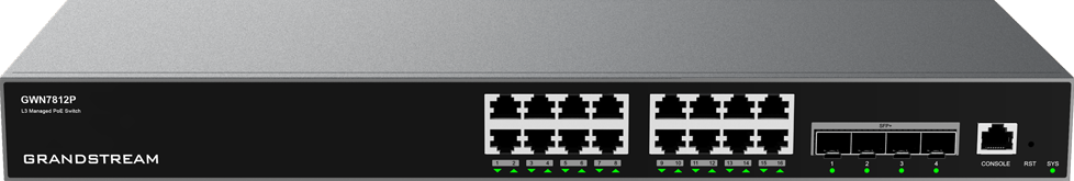 Grandstream GWN7812P Layer 3 Managed Switch met 16 Gigabit PoE+ en 4 SFP+ poorten