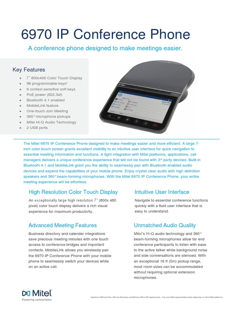 Als u op zoek bent naar een degelijke en betrouwbare oplossing voor uw zakelijke conferentiegesprekken, is de Mitel 6970 een uitstekende keuze. Met dit toestel haalt u een no-nonsense IP-vergadertelefoon in huis die precies doet wat hij moet doen: zorgen voor efficiënte en duidelijke communicatie tijdens uw meetings.