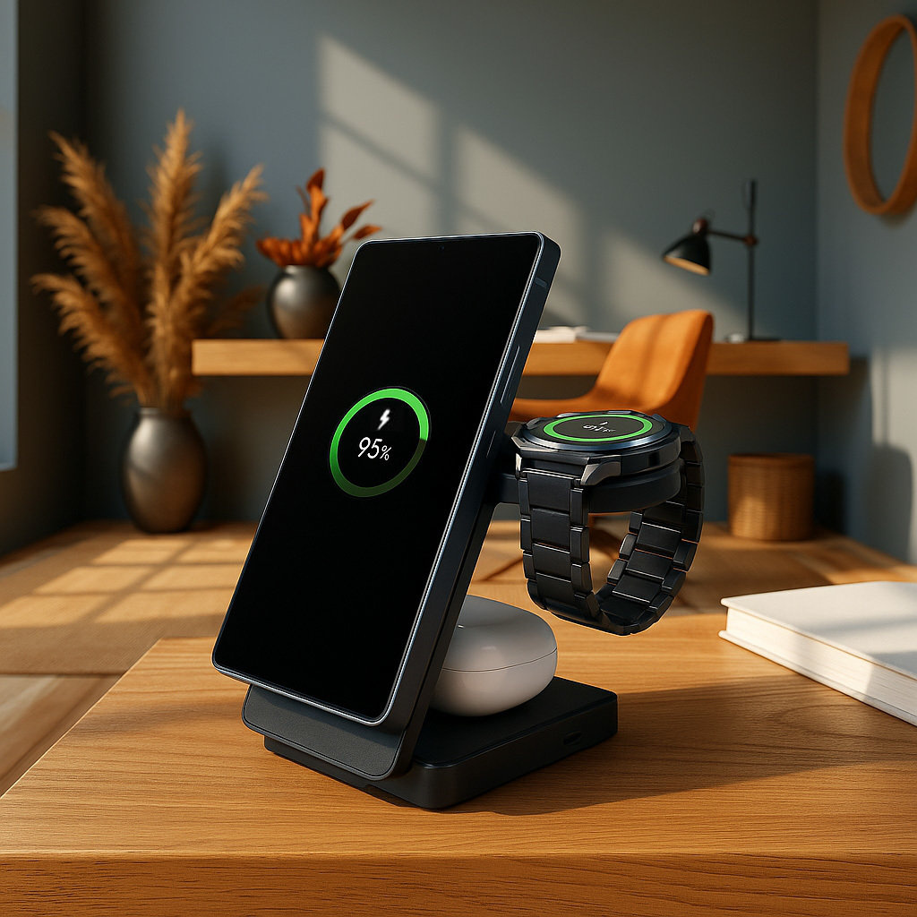 + Alles-in-één-gemak: laadt smartphone, Samsung Galaxy Watch en earbuds tegelijkertijd op.