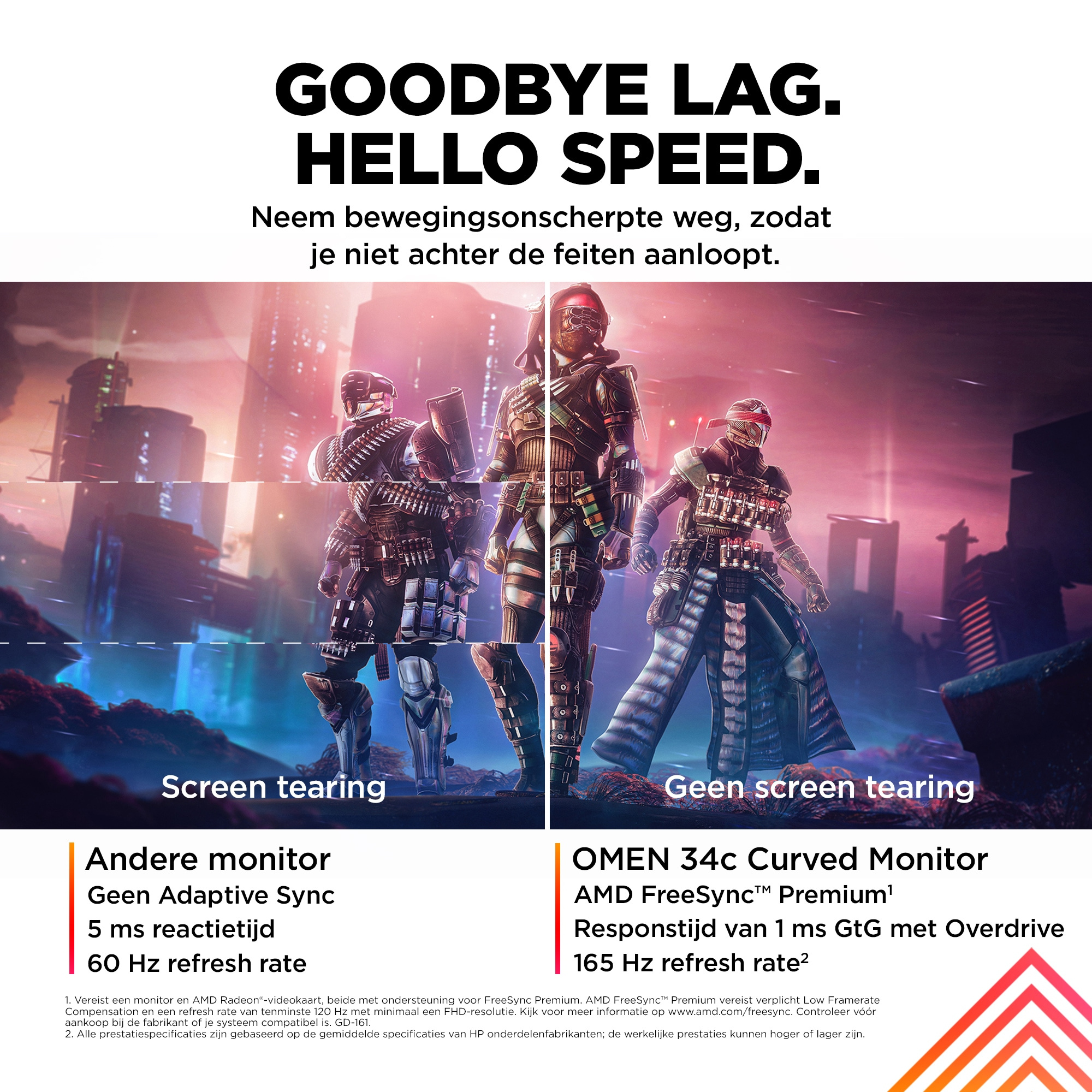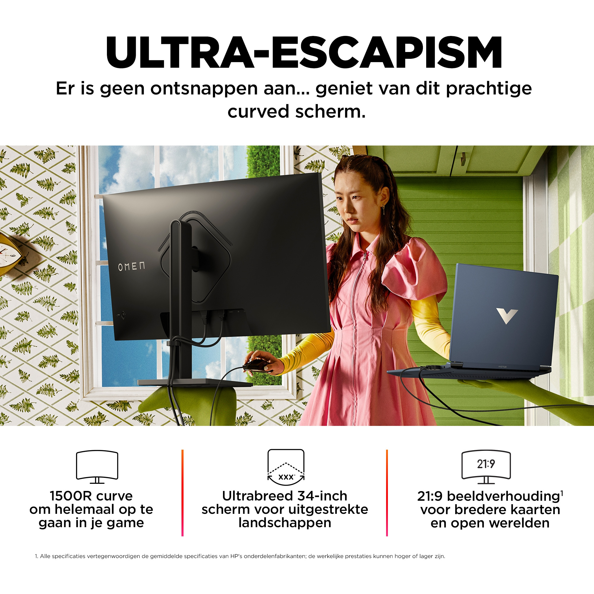 OMEN by HP OMEN by 34 inch WQHD 165 Hz Curved gaming monitor - OMEN 34c, 86,4 cm (34"), 3440 x 1440 Pixels, Wide Quad HD, LCD, 1 ms, Zwart