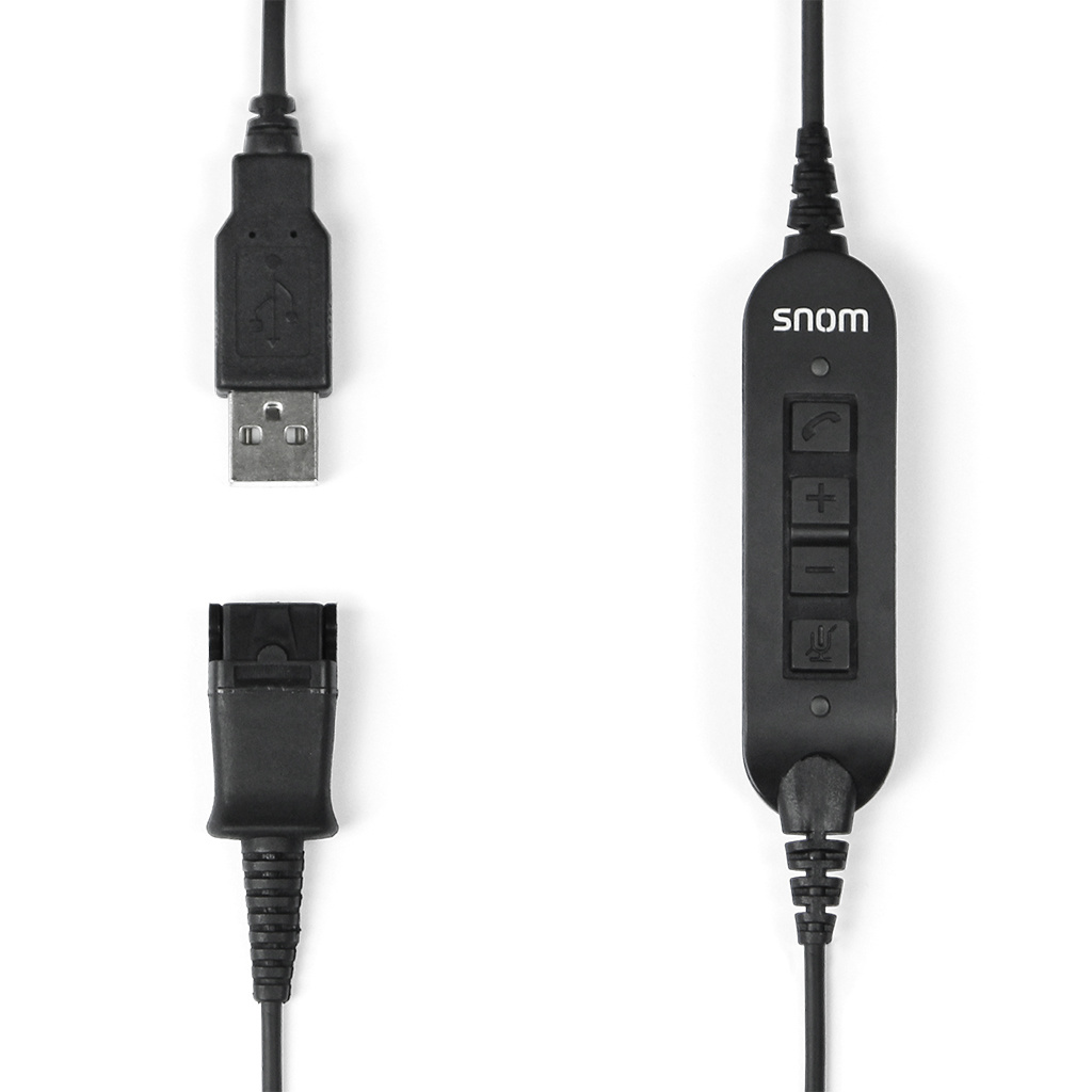USB-A aansluitingSnom Quick Disconnect (QD)Voor Snom A100M/D headsetsIn-line gespreksbediening