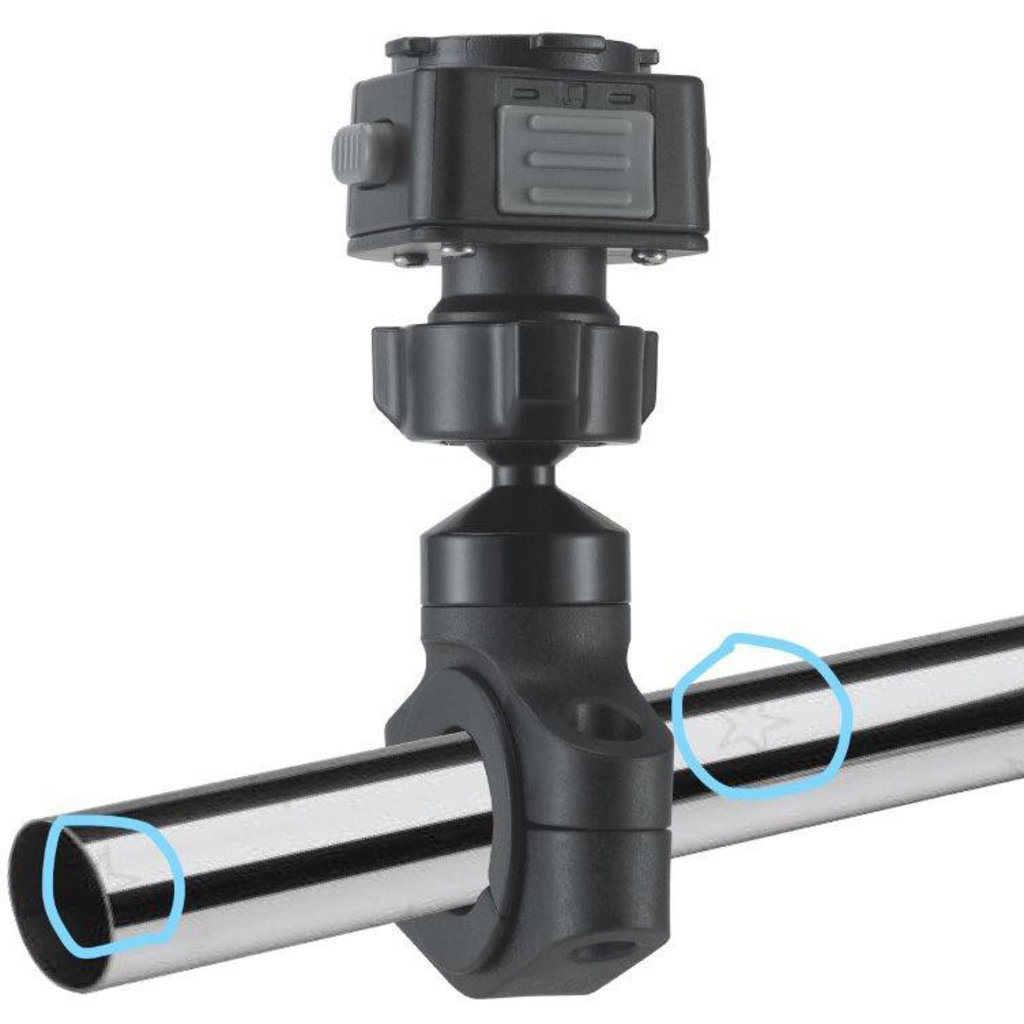 - Te bevestigen op een ronde stang/handvat/stuur/buis met een diameter van ø22-32mm (ø⅞”-1-¼inch)