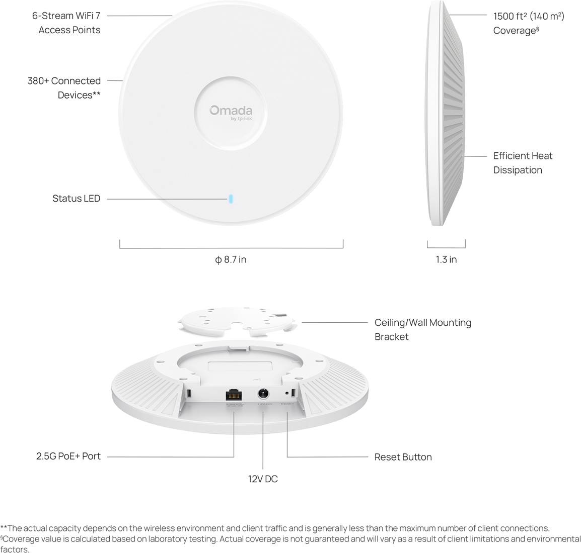 - Hoge netwerkcapaciteit: Met een gecombineerde snelheid tot 9214 Mbps over drie banden verwerkt dit access point grote hoeveelheden data tegelijkertijd.