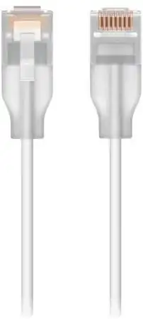 De constructie van deze kabel wijkt af van standaard patchkabels door de toepassing van een extreem dunne kabelmantel en specifieke connectorbehuizingen. Met een buitendiameter van slechts 2,5 millimeter is de kabel aanzienlijk dunner dan reguliere Cat6-kabels, wat de luchtstroom in een volle serverkast ten goede komt en kabelbendes voorkomt. De techniek achter de 'Etherlighting' functionaliteit is puur passief. Er bevindt zich geen actieve elektronica of LED-verlichting in de kabel zelf. De transparante 'boot' (het hulsje bij de connector) fungeert als een optische geleider. Wanneer deze wordt aangesloten op een compatibele UniFi switch, zoals de Pro Max-serie, schijnt het licht van de poort-LED door de transparante behuizing heen. Hierdoor kan de poortstatus of VLAN-configuratie direct fysiek worden afgelezen aan de hand van de kleur van de stekker.