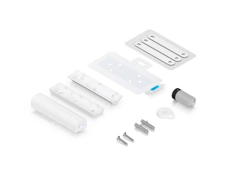 De UniFi Motion Sensor is vervaardigd uit robuust polycarbonaat en heeft een minimalistisch, wit ontwerp dat onopvallend in elk interieur past. De sensor is uitsluitend bedoeld voor binnengebruik. Dankzij de magnetische achterkant klikt u hem eenvoudig vast op metalen oppervlakken, of u gebruikt de meegeleverde houder voor montage aan een muur of plafond. Voor de communicatie maakt het apparaat gebruik van Bluetooth; een compatibel UniFi-access point of UniFi-camera in de buurt fungeert hierbij als brug om de data veilig door te sturen naar uw UniFi Protect-controller.