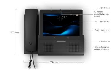 De behuizing van de UniFi Phone Touch is vervaardigd uit hoogwaardig en slijtvast polycarbonaat, wat zorgt voor een robuuste en professionele uitstraling op elke werkplek. Dankzij de wandmontage creëert u een strakke, georganiseerde omgeving zonder rondslingerende kabels op het bureau. Het toestel is ontworpen voor intensief zakelijk gebruik en beschikt over een ergonomische handset met een handige mute-knop, gecombineerd met een high-fidelity luidspreker voor kraakheldere handsfree communicatie.