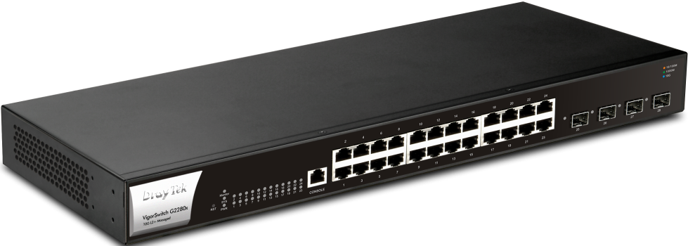 DrayTek VigorSwitch G2280x Managed L2+ Switch - 24x Gigabit PoE+ & 4x 10G SFP+ Uplink
