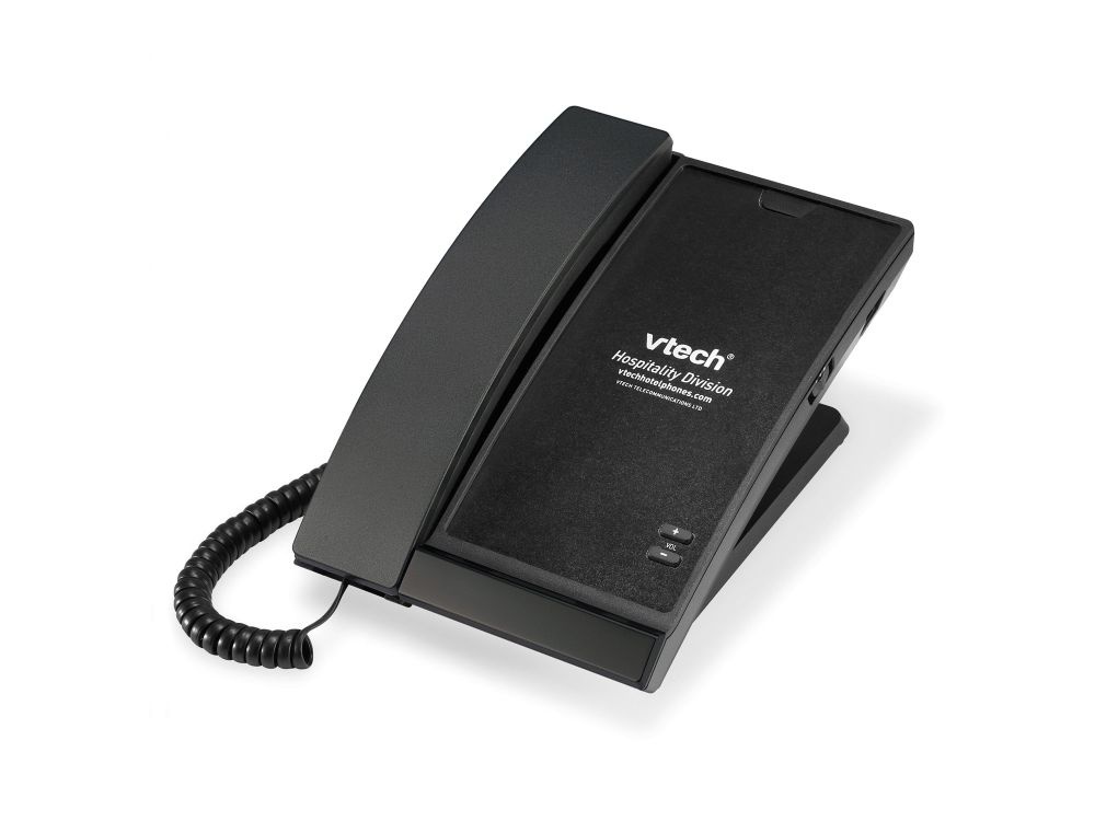 De Vtech A2100 is een betrouwbare, analoge telefoon in een strak matzwart design, ideaal voor lobby's, recepties en andere openbare ruimtes.