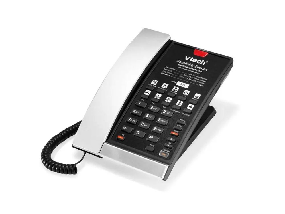 De Vtech S2210-X is een betrouwbare, bedrade SIP-hoteltelefoon in een stijlvolle zilver-zwarte uitvoering. Ideaal voor hotels die hun gasten een eenvoudige en functionele communicatieoplossing willen bieden.
