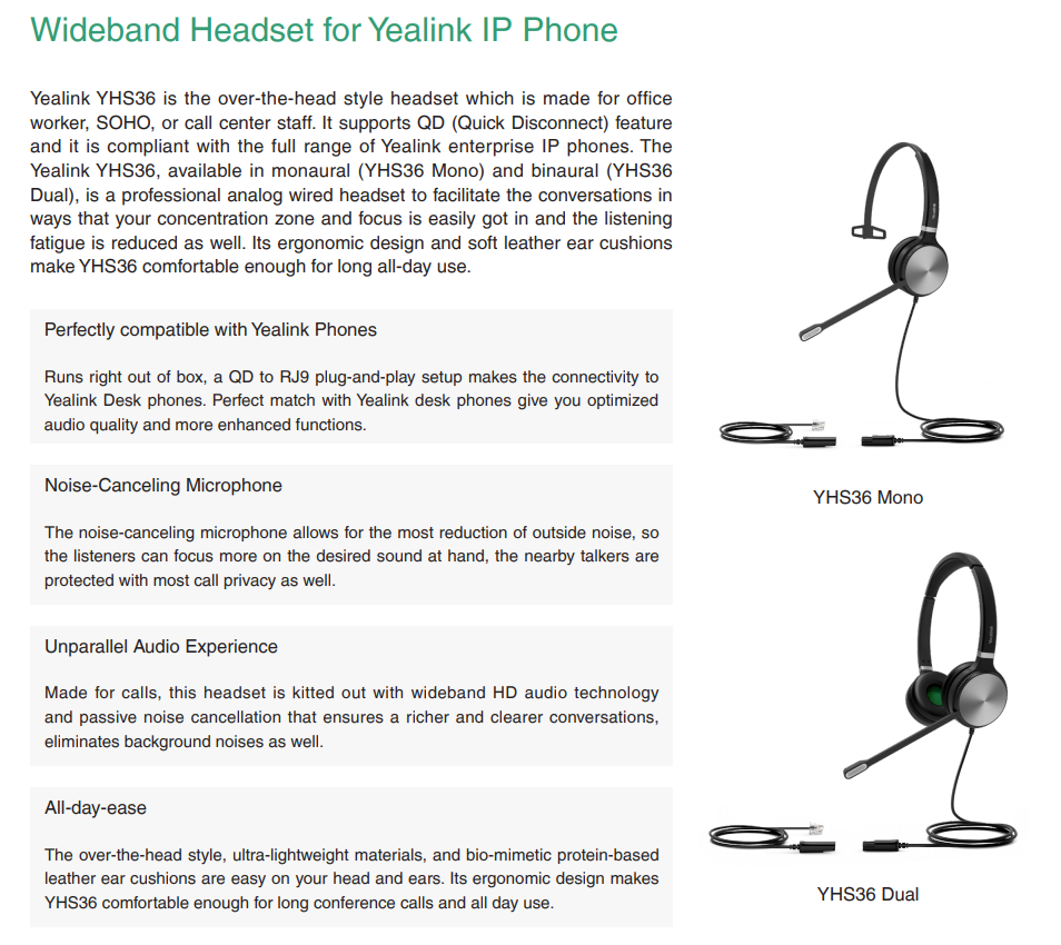 Waarom kiezen voor de Yealink YHS36 E2 Mono?